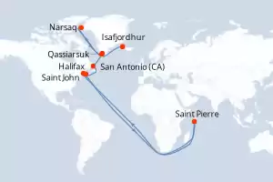 Itinerario : Halifax, Saint Pierre, Saint John, Saint Anthony CA, Qassiarsuk, Narsaq, Qaqortoq, Isafjordhur