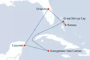 Itinerario : Orlando, Nassau, Great Stirrup Cay, Georgetown Islas Caiman, Cozumel, Orlando