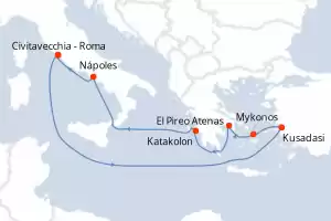 Itinerario : Civitavecchia - Roma, Kusadasi, Mykonos, El Pireo Atenas, Katakolon, Nápoles, Civitavecchia - Roma