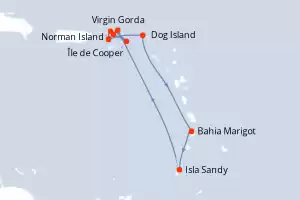 Itinerario : Bahia Marigot, Isla Sandy, Virgin Gorda, Île de Cooper, Norman Island, Islas Virgenes, Jost Van Dyke, Islas Virgenes, Dog Island, Bahia Marigot