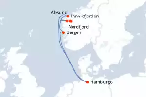 Itinerario : Hamburgo, Bergen, Nordfjord, Innvikfjorden, Olden, Alesund, Hamburgo