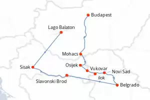 Itinerario : Lago Balaton, Sisak, , Davor, Slavonski Brod, , Belgrado, Novi Sad, ilok, Vukovar, Osijek, Mohacs