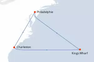 Itinerario : Philadelphie, Kings Wharf, Charleston, Philadelphie