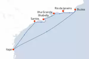 Itinerario : Santos, Ilhabella, Angra dos Reis , Rio de Janeiro, Buzios, Itajai, Santos