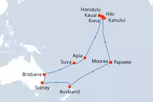 Itinerario : Sidney, Auckland, Papeete, Moorea, Hilo, Kona, Kauai, Honolulu, Kahului, Apia, Suva, Brisbane, Sidney
