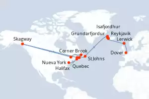 Itinerario : Dover, Lerwick, Reykjavik, Grundarfjordur, Isafjordhur, St Johns, Corner Brook, Quebec, Skagway, Charlottetown, Sidney, Halifax, Nueva York
