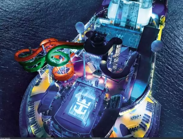 Entre las diversas actividades de ocio, los pasajeros tienen la posibilidad de elegir, por ejemplo, el simulador de surf FlowRider, el muro de escalada de 12 metros de altura, la pista de patinaje, el campo de minigolf, la sala de fitness, el ring de boxeo o los campos deportivos. A bordo de este barco, tampoco debemos olvidar las numerosas tiendas libres de impuestos, la biblioteca, la pantalla de cine instalada frente a la piscina, ...
