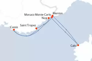 Itinerario : Niza, Monaco Monte-Carlo, Calvi, Menton, Cassis, Saint Tropez, Niza