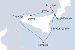 Itinerario : La Valetta, Port Empedocle, Trapani, Palermo, Lipari, Taormina, Reggio Calabria, Stromboli, Siracusa ( Sicilia), La Valetta
