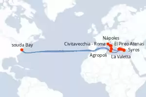 Itinerario : Civitavecchia - Roma, Nápoles, Agropoli, Naxos Di Giardini, La Valetta, souda Bay, Nafplio, Syros, Rodas, Bodrum, Mykonos, El Pireo Atenas, Civitavecchia - Roma, Nápoles, Agropoli, Naxos Di Giardini, La Valetta, souda Bay, Nafplio, Syros, Rodas, Bodrum, Mykonos, El Pireo Atenas