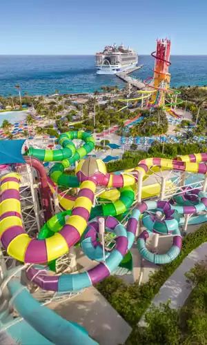 Las Bahamas son famosas por sus largas playas de arena y sus aguas cristalinas. Muchos cruceros por las Bahamas que zarpan desde el puerto de Miami o Puerto Cañaveral hacen escala en la isla privada de Royal Caribbean, Perfect Day at CocoCay. Se trata de un destino diseñado para atraer a todo el mundo, desde familias hasta parejas en busca de paz y tranquilidad. En el programa el Thrill Waterpark, con el tobogán acuático más alto de Norteamérica, la posibilidad de alquilar cabañas privadas, fascinantes experiencias de snorkel, así como la posibilidad de sobrevolar la isla en tirolina o globo aerostático, ofreciendo impresionantes vistas panorámicas.
